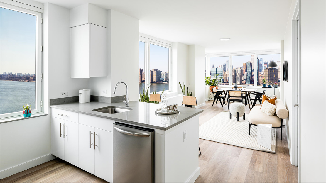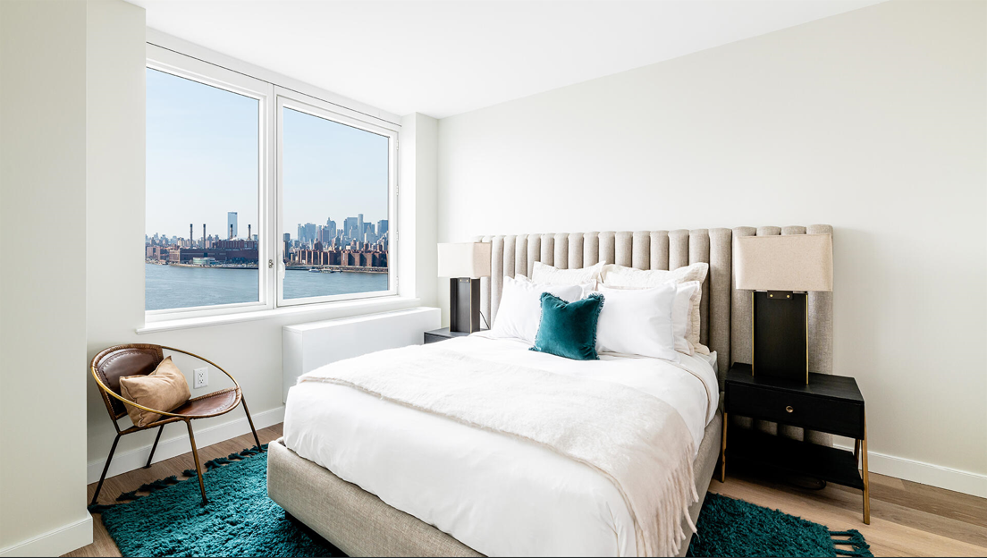 Magnificent 2 bed, 2 bath apartment featuring two private terraces overlooking the Manhattan skyline and East River. Other highlights include a windowed open kitchen, spacious corner living area with a triple exposure, walk-in closet, windowed bath, in-home laundry, and southwest exposure