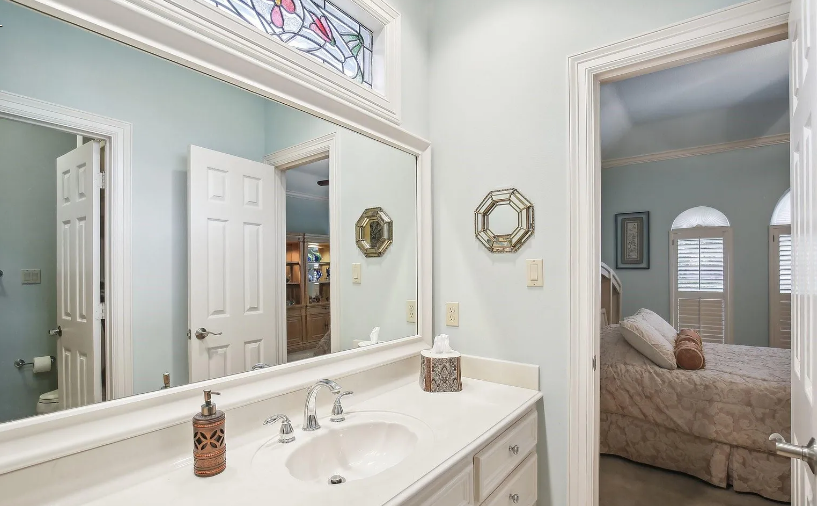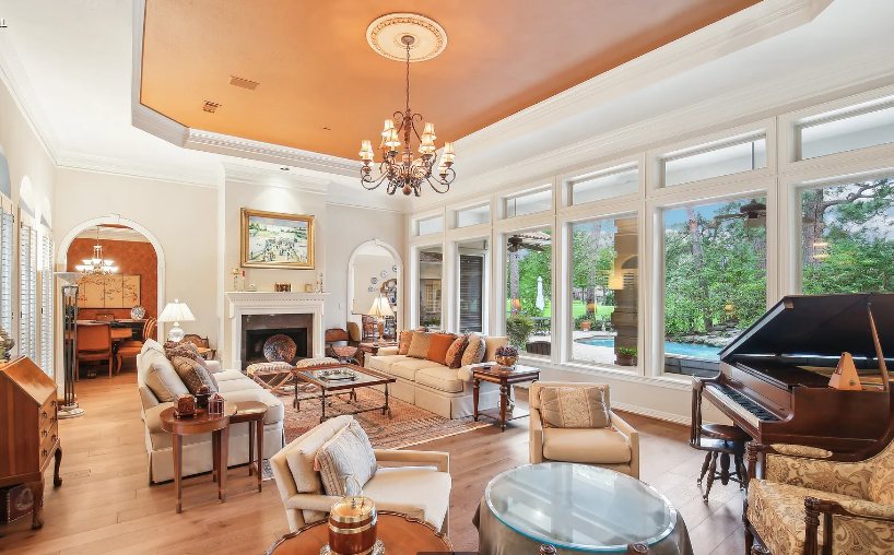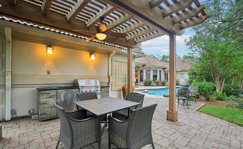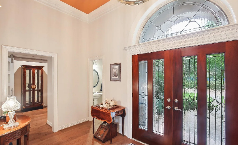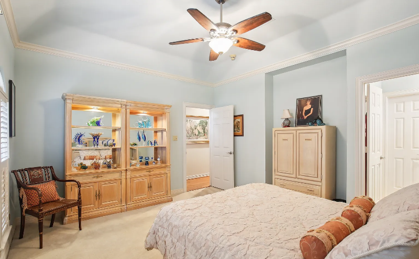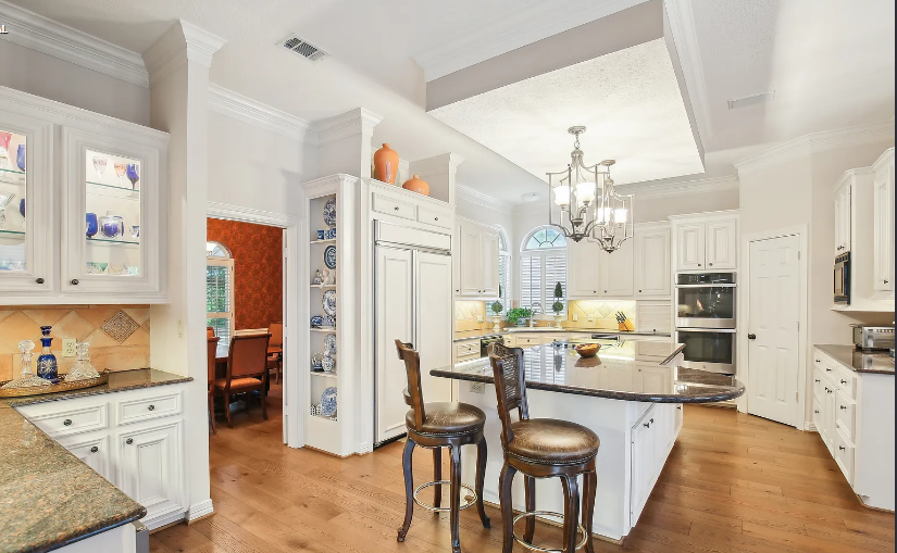 With outstanding workmanship throughout, this gorgeous custom stucco home offers roomy single-story living. Savor expansive views of the golf course from the property’s front and back. Inside, you’ll discover hardwood flooring, 12-foot ceilings, and a gourmet island kitchen with granite worktops, two ovens, and lots of storage. The spacious breakfast area features a striking octagonal ceiling and looks out over a glittering pool, spa, and fairway beyond, as well as a 28-foot covered porch. The pool is kept up nicely and was just resurfaced. Extensive built-in cabinets, illuminated shelves, and an indoor and outdoor surround sound system are examples of thoughtful additions.